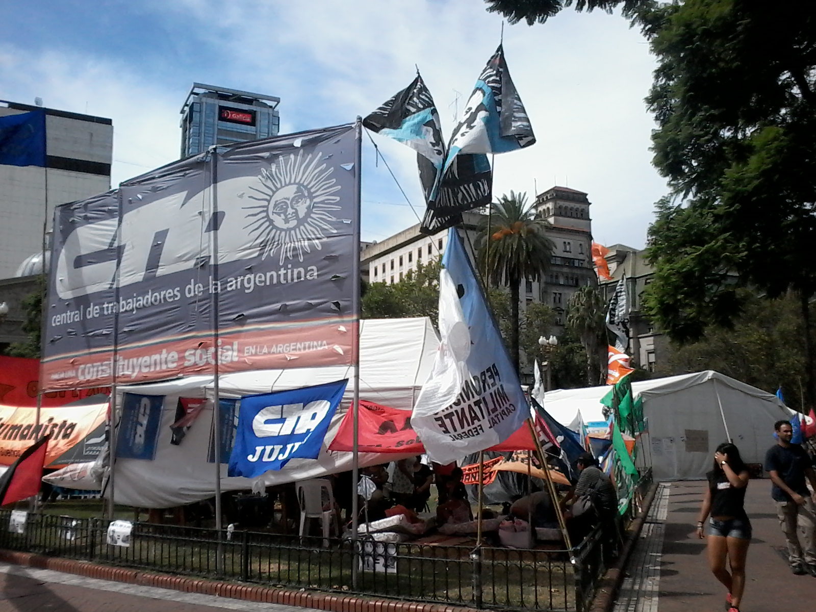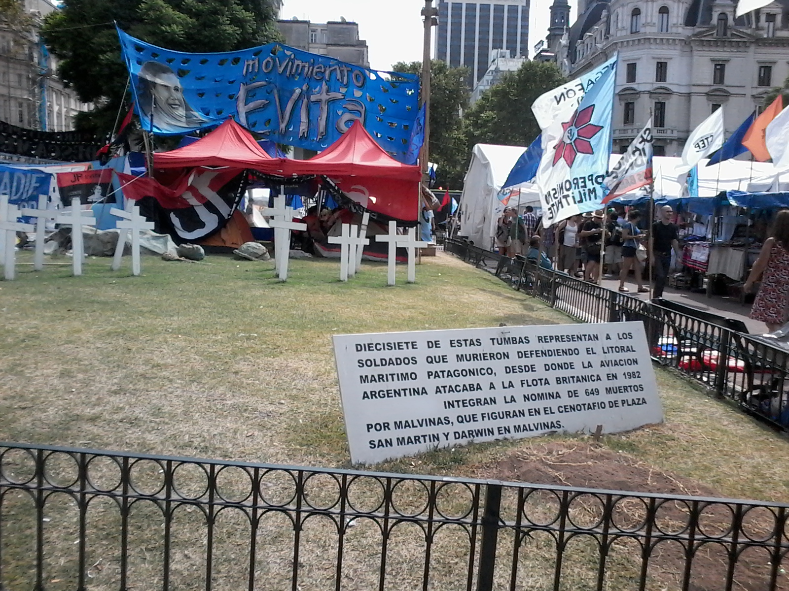 | 3 de febrero de 2016 Acampe por Milagro Salas, Acampe ex-combatientes Malvinas, Feria Artesanal, muchas carpas,2 gazebos, innumerables pancartas, Vista de la Casa Rosada, la cúpula de la torre del Cabildo y la Catedral de Buenos Aires ver INDEX o ver ARCHIVO |
